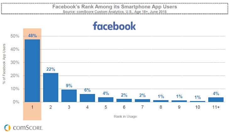 Facebook has the clear lead here too, though, as it's the number-one installed app, and it's considered the number one app for 48% of those that have it installed:
