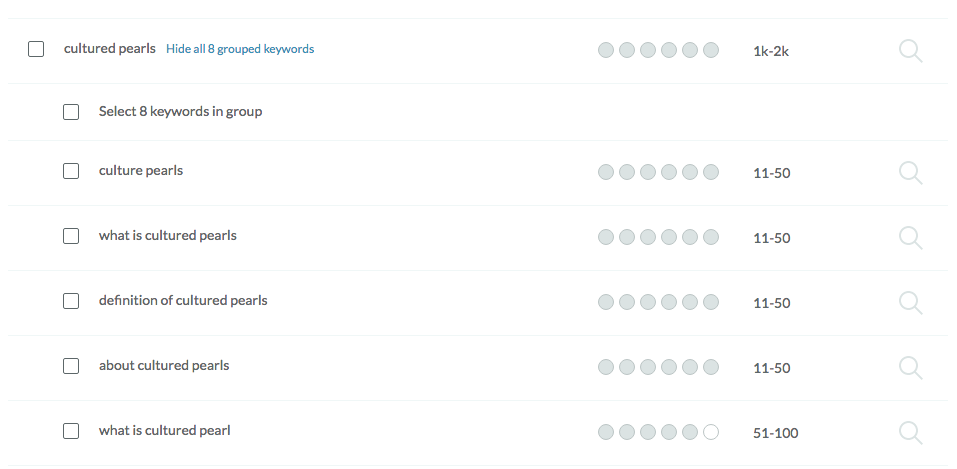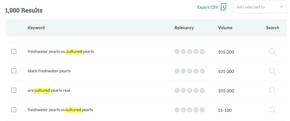Now this is starting to look interesting: we’ve got some keyword modifiers, some clear buying signals, and a better idea of what people might be looking for around "freshwater pearls."