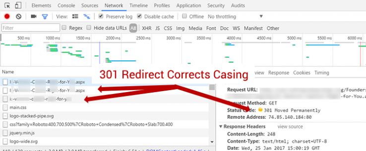 Of the many useful features in GSC, Google provides a list of some common HTML errors it discovered in the course of crawling your site. This section, located at Search Appearance > HTML Improvements, lists off several potential errors including Duplicate Titles, Duplicate Descriptions, and other actionable recommendations. Fortunately, this first example gives us an opportunity to outline methods for testing both the internal and external validity of the data. As you can see in the screenshot below, GSC has found duplicate meta descriptions because a website has case insensitive URLs and no canonical tag or redirect to fix it. Essentially, you can reach the page from either /Page.aspx or /page.aspx, and this is apparent as Googlebot had found the URL both with and without capitalization. Let's test Google's recommendation to see if it is externally and internally valid.