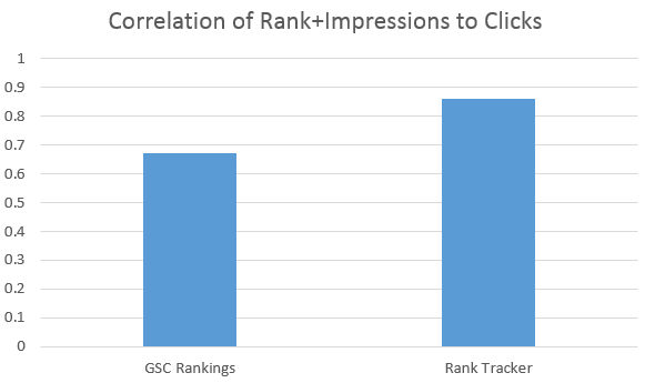 Finally, we did one more type of comparative analytics to determine the trustworthiness of GSC's ranking data. In general, the number of clicks received by a site should be a function of the number of impressions it received and at what position in the SERP. While this is obviously an incomplete view of all the factors, it seems fair to say that we could compare the quality of two ranking sets if we know the number of impressions and the number of clicks. In theory, the rank tracking method which better predicts the clicks given the impressions is the better of the two.
