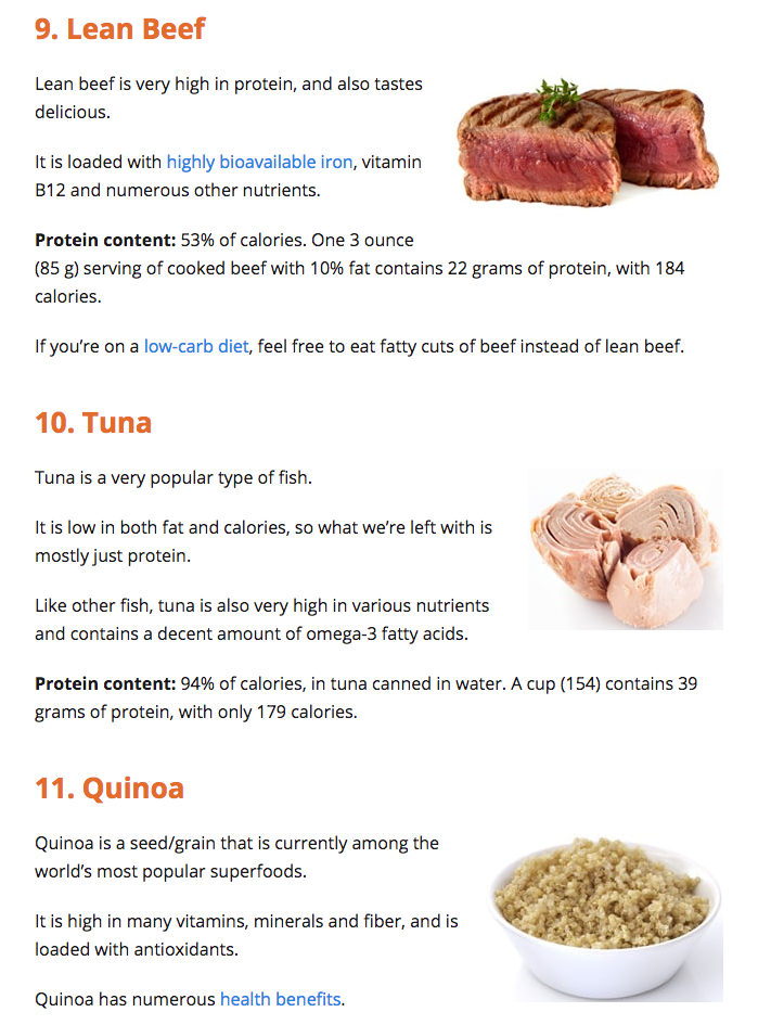 Authority Nutrition’s list of 20 high-protein foods has links from 53 RDs. If I’m writing a nutrition article where I mention high-protein foods, linking to this page will save me from researching and listing out a handful of protein-rich foods.