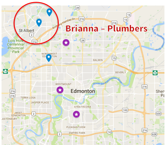 These business are all so close to me that I could walk to them in about 8 to 15 minutes. Here’s a map of Edmonton with pins for my location and these 3 businesses. Just look at how close they are to my location: