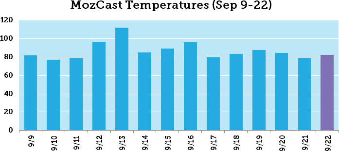 September has been a very volatile month for the SERPs (more on that later in the post), but here’s what we’re seeing in MozCast for the past two weeks, including last night: