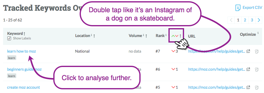For this I’m going to head to my Rankings tab, containing all the keywords I’m tracking in my Moz Pro campaign.